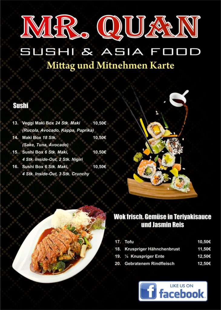 Mittag und Mitnehmen Karte